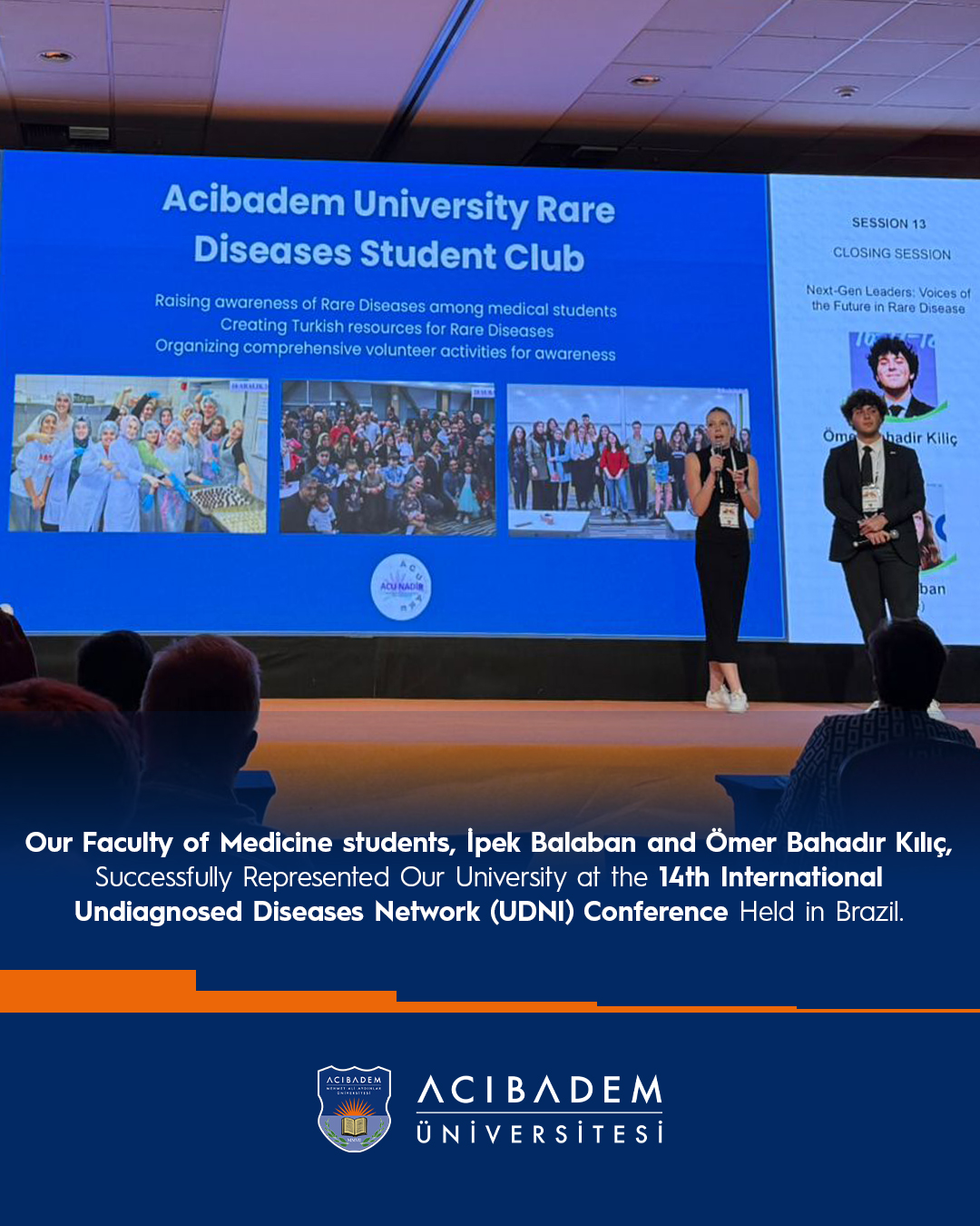 Our Faculty of Medicine fourth-year students, İpek Balaban and Ömer Bahadır Kılıç, attended the 14th UDNI (Undiagnosed Diseases Network International) Conference on behalf of our Faculty and University.