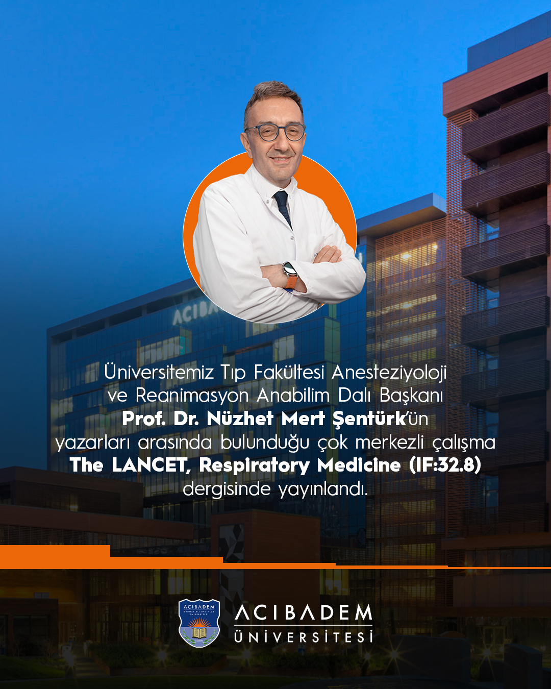 Üniversitemiz Tıp Fakültesi Anesteziyoloji ve Reanimasyon Anabilim Dalı Başkanı Prof. Dr. Nüzhet Mert Şentürk’ün yazarları arasında bulunduğu çok merkezli çalışma, The LANCET, Respiratory Medicine (IF: 32.8) dergisinde yayımlandı. Öğretim üyemizi tebrik eder, başarılarının devamını dileriz.